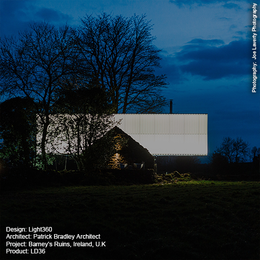 As featured on BBC1's restoration rescue, Barney's Ruins have been revived from Architect, Patrick Bradley's family's former 1830's barn. It was his vision to bring the barn back to life as a glowing container dwelling that floats gracefully on the hardy structure of the original ruins. Using LD36 linear lengths the entire container structure dazzles at night, creating an iconic piece of contemporary architecture whilst still respecting the ruin's deep-rooted history.